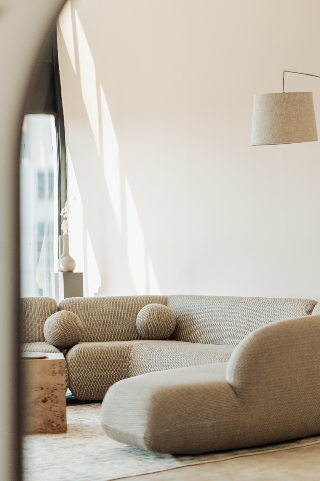 Um espaço minimalista, moderno e sofisticado ideal para ensaios com estética leve e elegante.